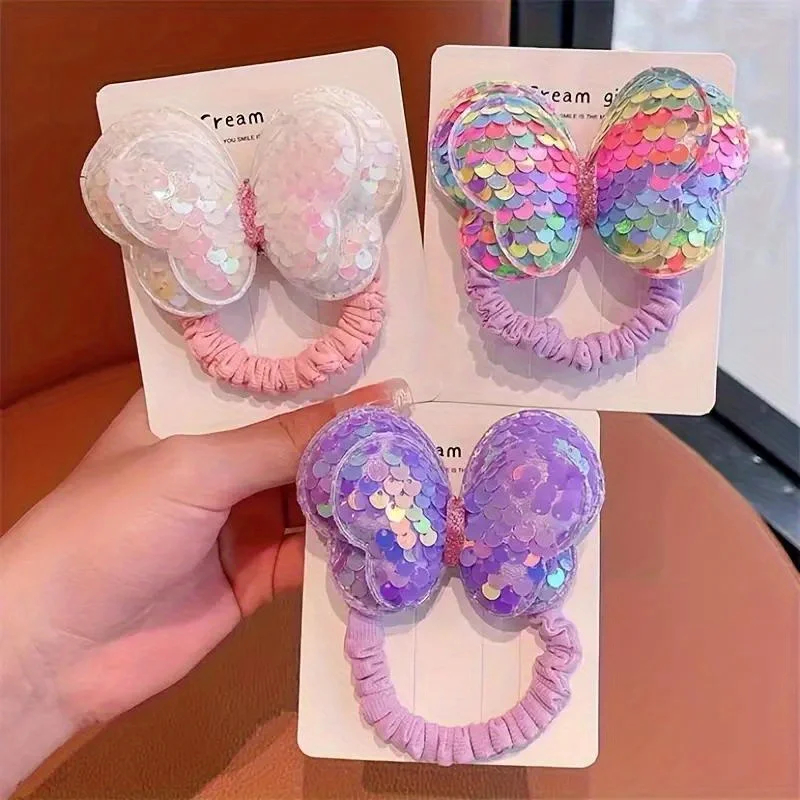 طقم ربطات شعر فراشة لامعة للأطفال